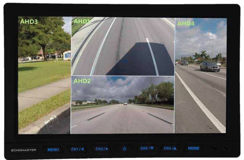 - QUAD AHD CAMERA INPUTS – SUPPORTS 4 AHD OR CVBS CAMERAS TO HELP ELIMINATE BLIND SPOTS.